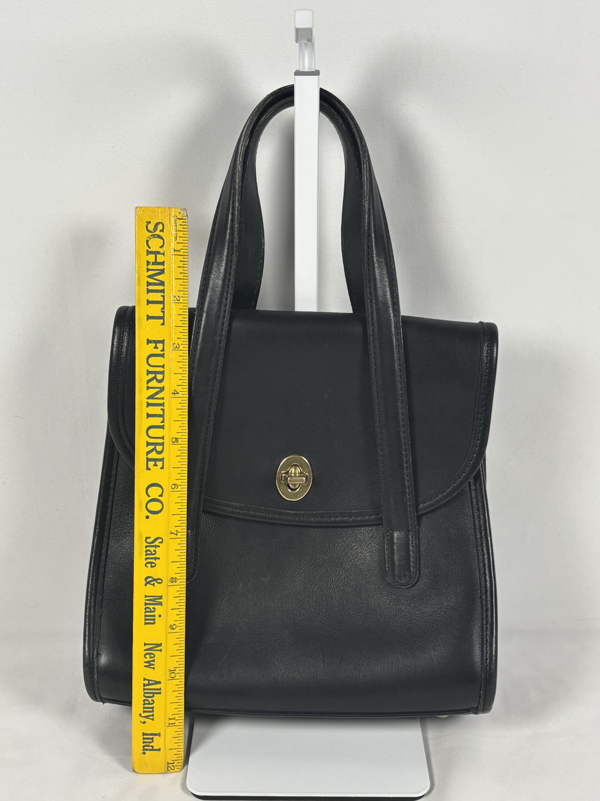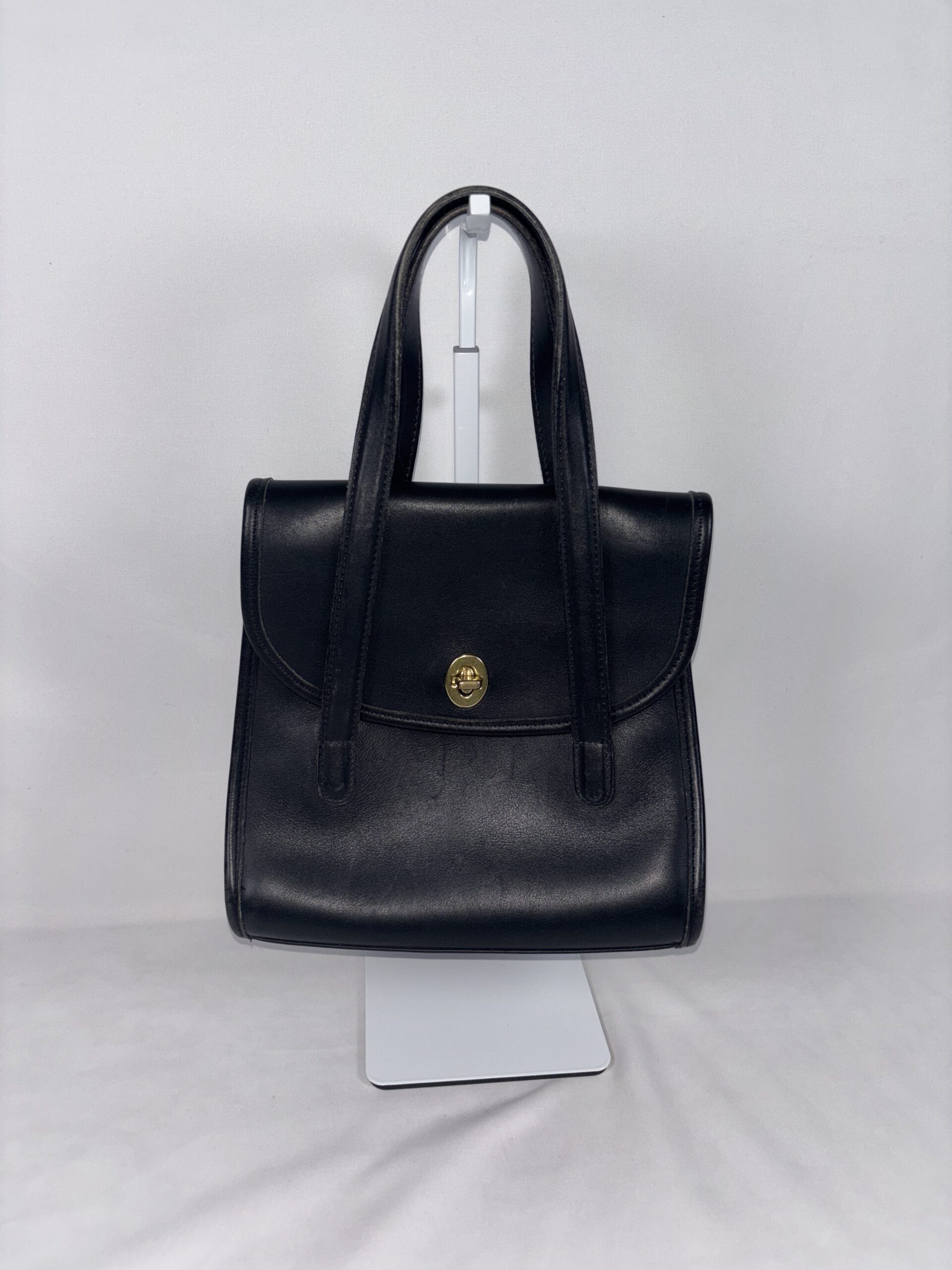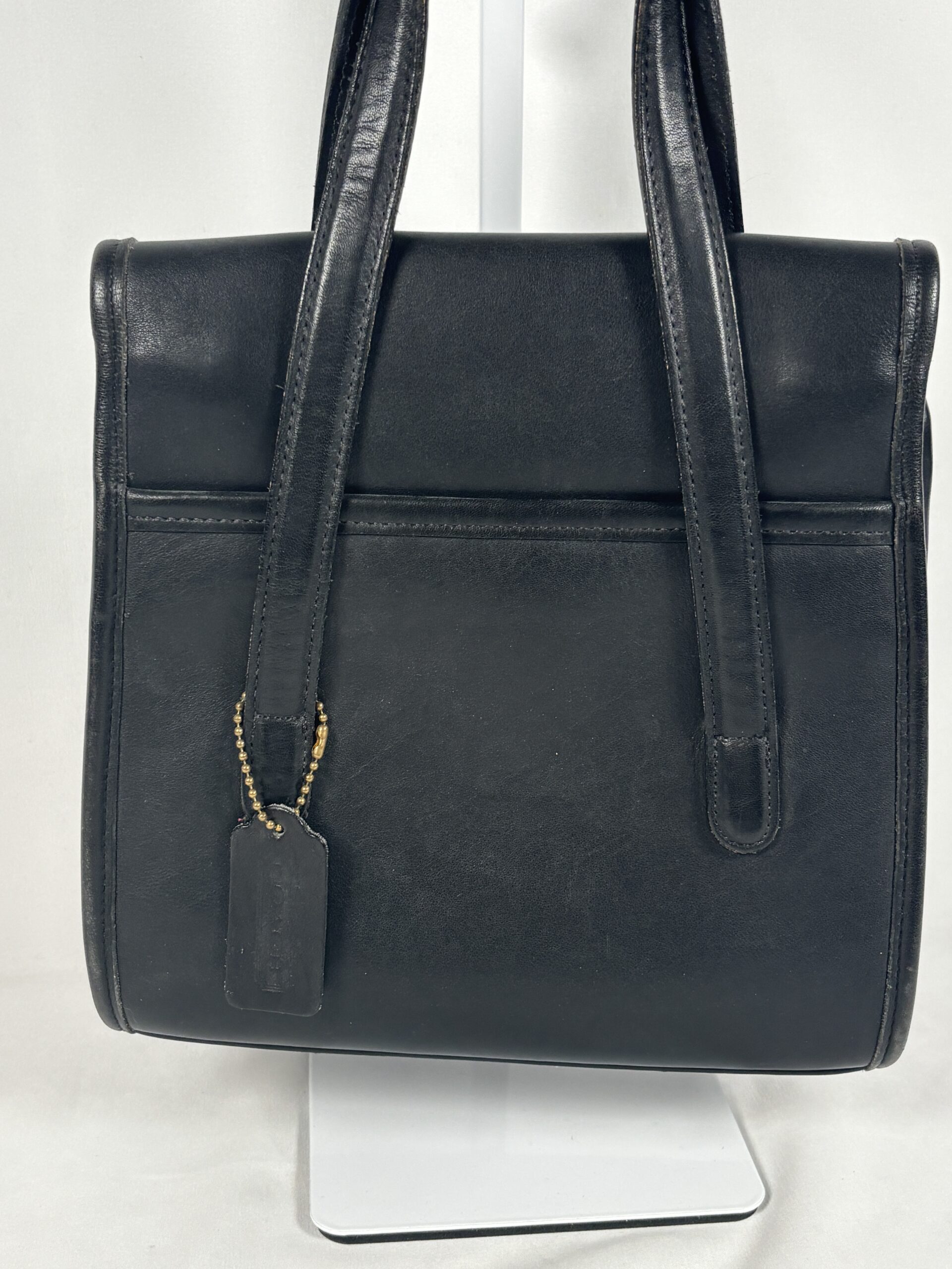 Vintage coach Belmont satchel, black leather, brass type hardware, interior zipper and open pocket.